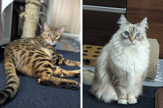 朝、夕の1日2回のお世話をお願いして、ご飯の準備、トイレの清掃、猫達の健康状態などなど毎回LINEでご報告いただいて海外にいても状況がよくわかるようにして頂き感謝しております。